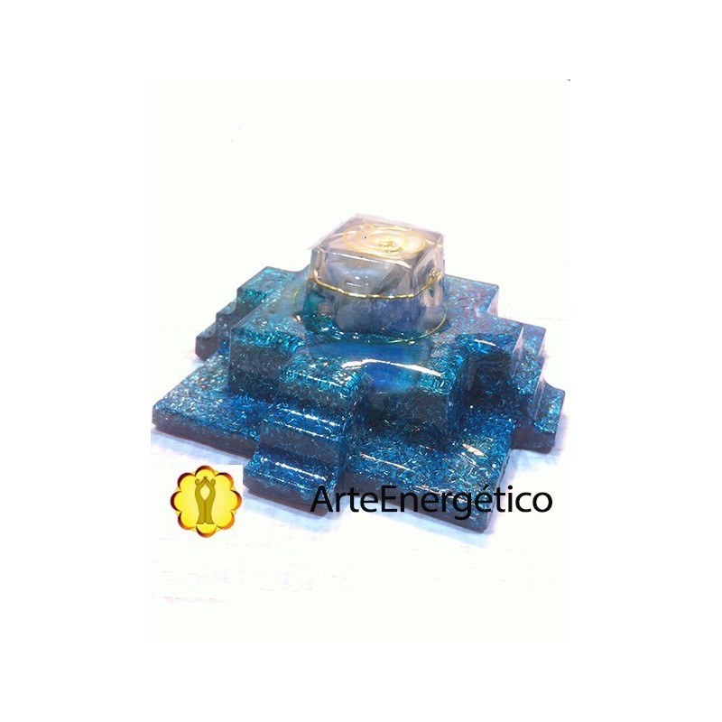Esta orgonita ha sido creada con inspiración en los templos mayas o pirámides escalonadas.